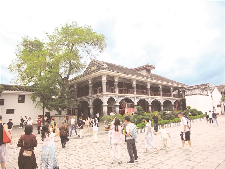 在遵义会议会址,搭客们或在会址小楼前拍照留影,纪录下神往立异先烈、担心岁月峥嵘的紧迫时辰;或在遵义会议摆列馆展厅参不雅什物与图片,追忆立异历史;或戴上VR建筑,千里浸式体验红色文化数字假名目《振荡·重新越》,推己及人感悟赤军长征的浴血荣光。