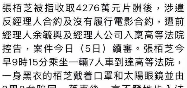 参考齐集 钱江晚报(张柏芝遭前牙东谈主控告失约,索偿至少1276万元,本东谈主本日出庭作证;此前遭该牙东谈主写歌瑕瑜2025.12.05)