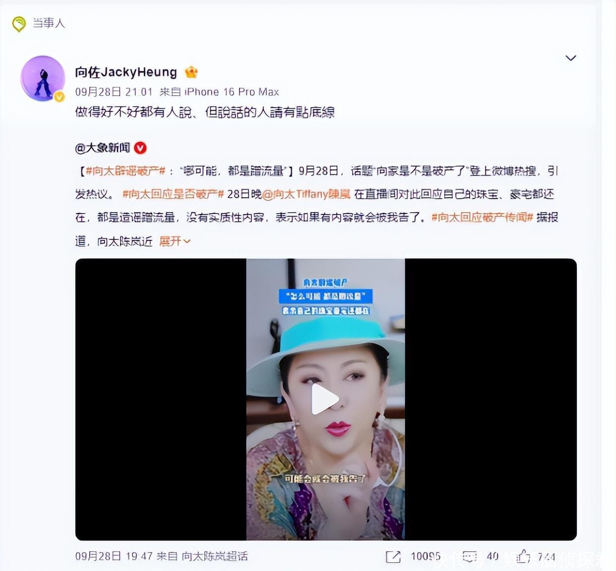 向佐也迅速转发视频,说“乱传的东谈主能不成有点底线”。其后牙东谈主出来解说,那140万不是向佐赌的,是他替一又友担保,一又友没还钱,好意思高梅找他要,现时如故还清了。