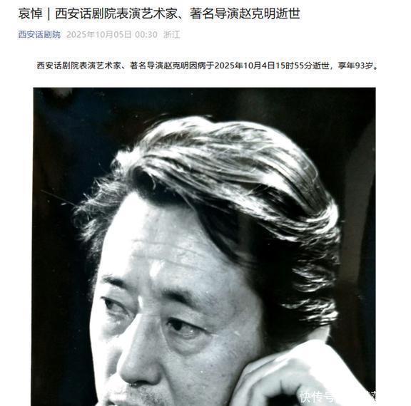 赵克明方位的“西安话剧院”在5日一大早发了讣告,还共享了他2023年汲取采访的视频。其时他精神现象挺好的,语言也尽头有力儿,即是为了庆祝我方老单元“西安话剧院”70周年。