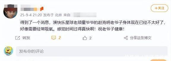 九月初就有网友传出音书,说赵克明体魄不好,相通得吸氧。那会儿人人都不太征服,觉得赵克明爷爷很快就能好起来,再行回《惬心星球》上班。